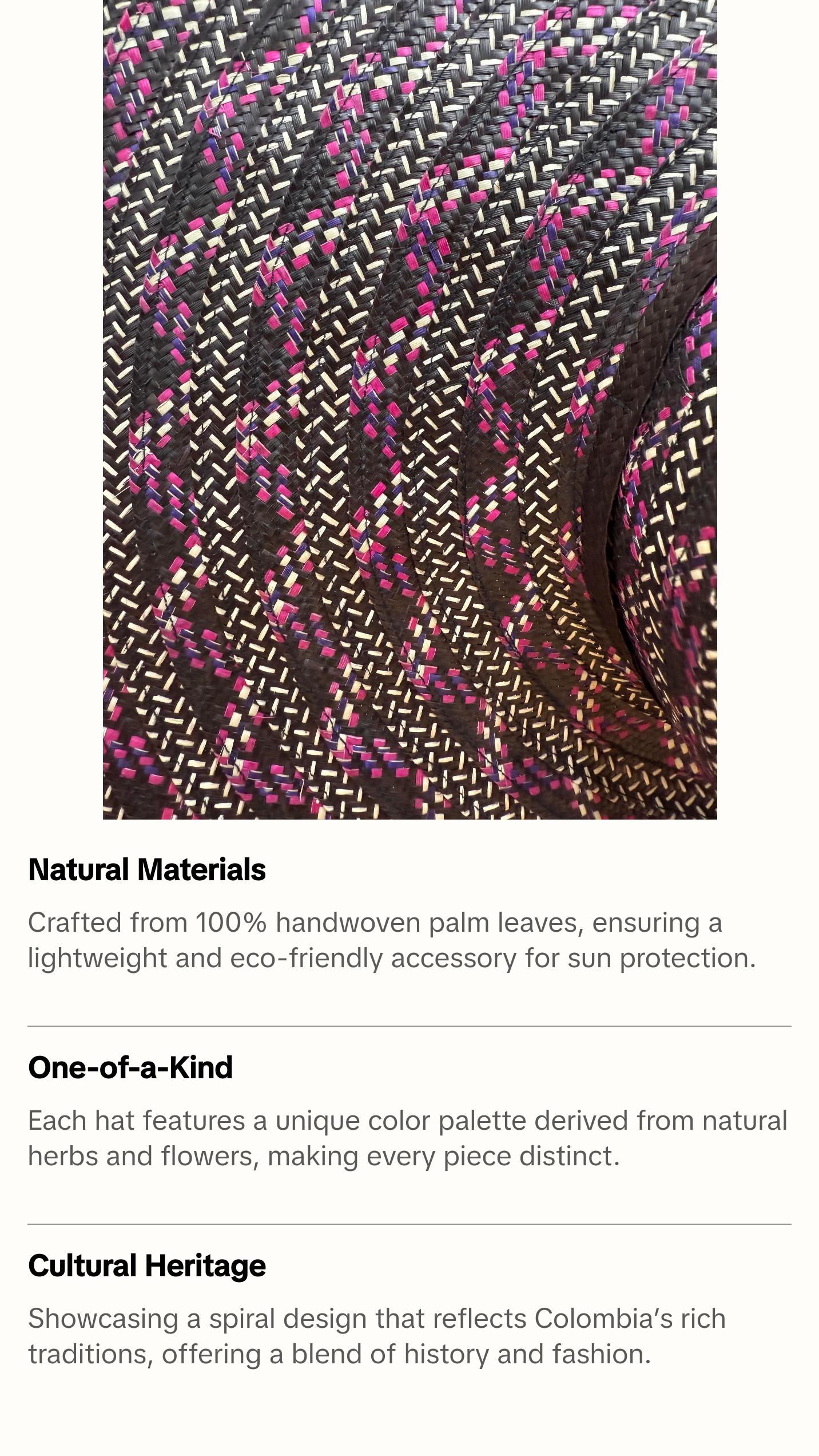 - Unique spiral design representing Colombia’s rich heritage