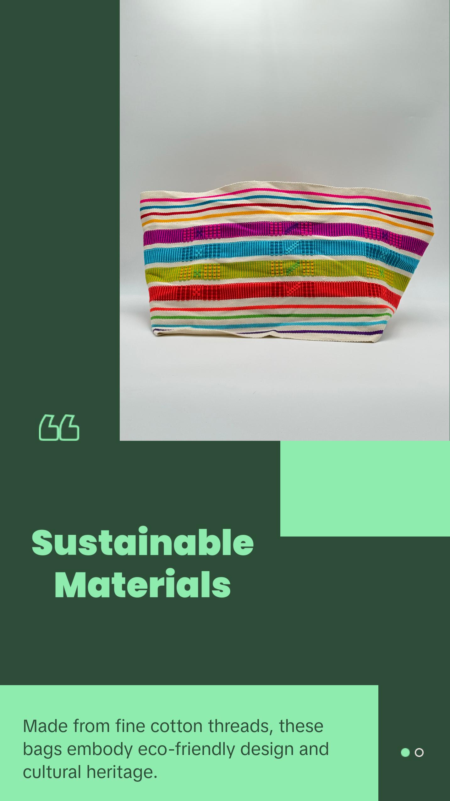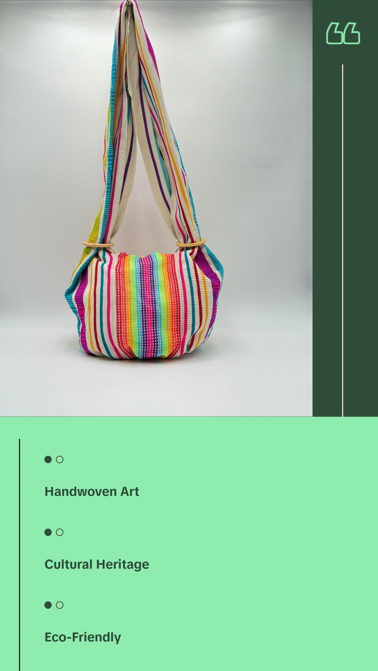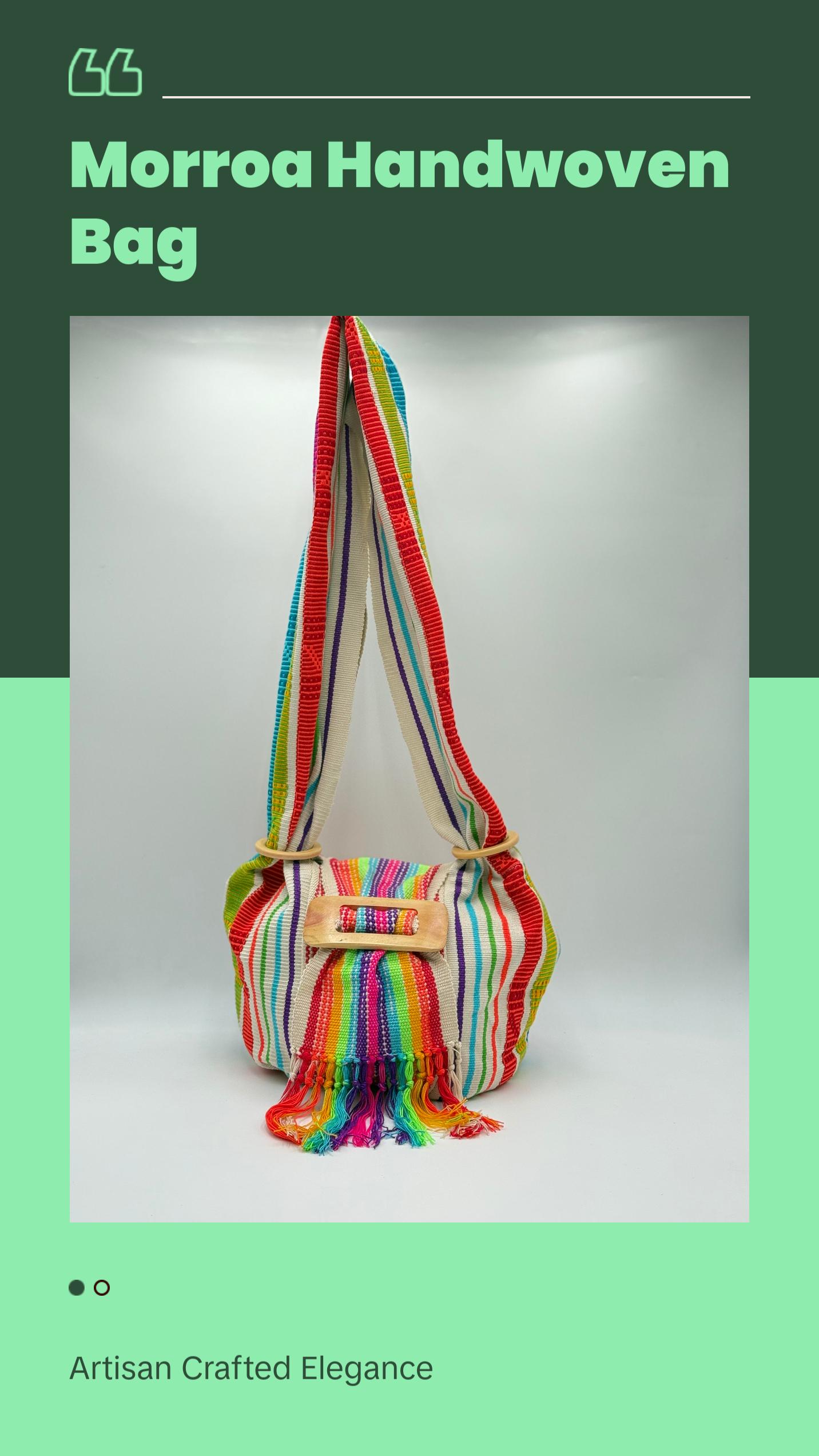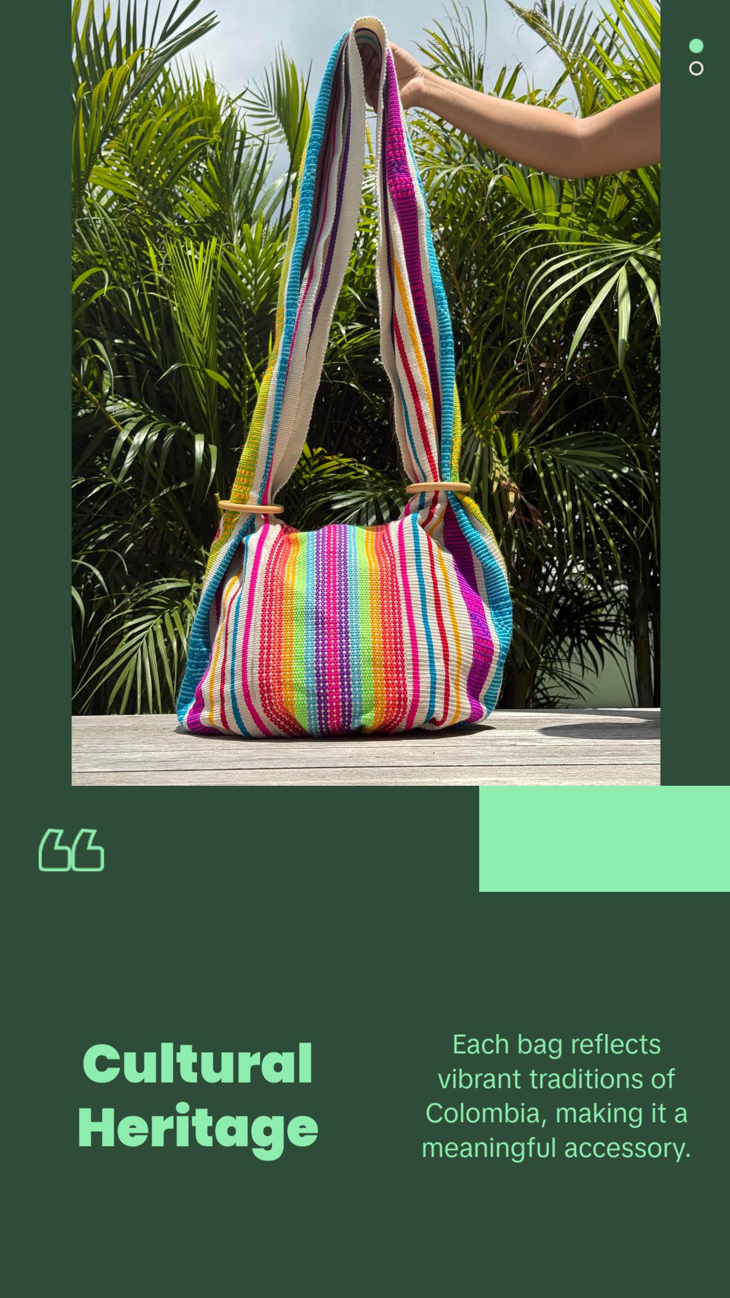 Handwoven by the Morroa people of Colombia, each bag is a unique piece of art crafted with fine cotton threads on traditional looms. 100% handmade and sustainable, these bags combine vibrant cultural heritage with eco-friendly design. No two are alike, making each one a truly special, one-of-a-kind accessory. A perfect blend of artistry, tradition, and sustainability.