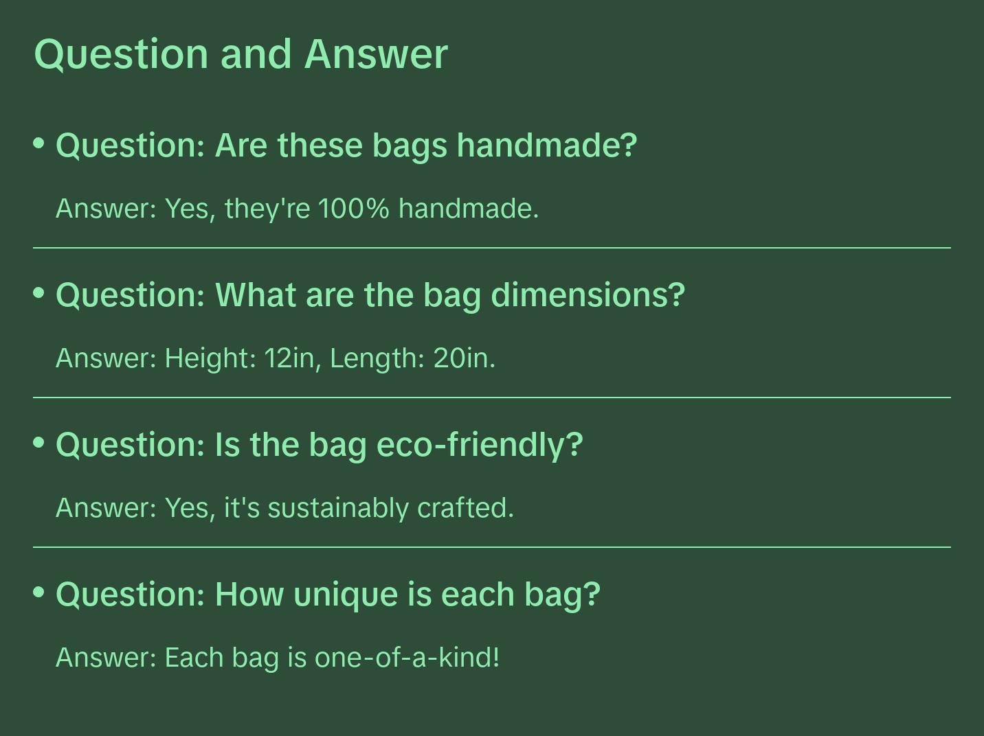 Please note, as each bag is handmade, the dimensions are approximate and may vary slightly: